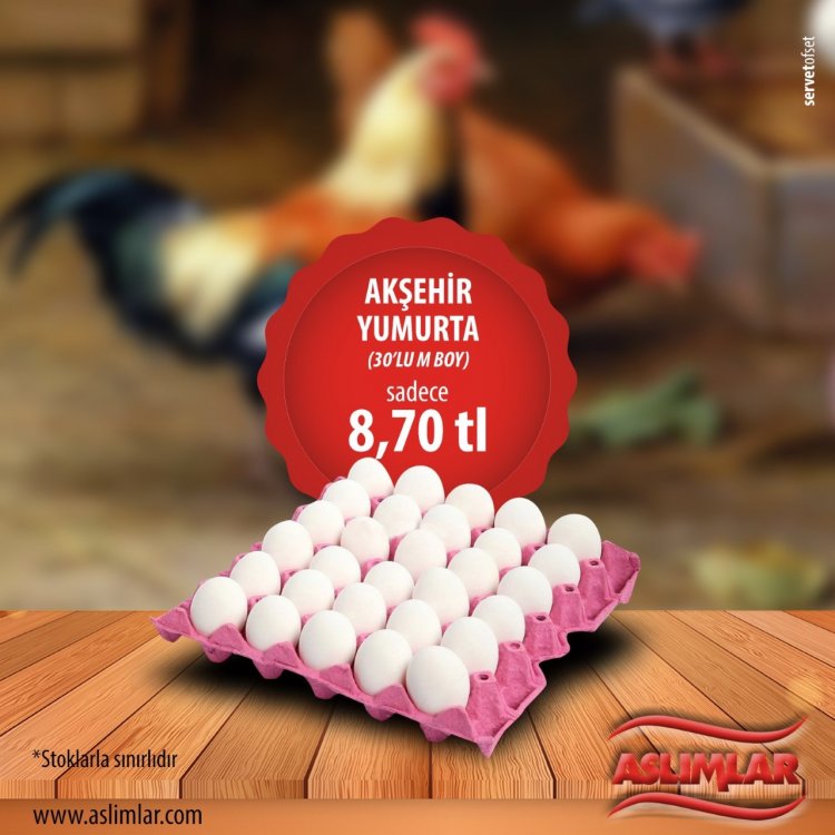30 LU M BOY AKŞEHİR YUMURTA MARKETLERİMİZDE SADECE 8,70 TL